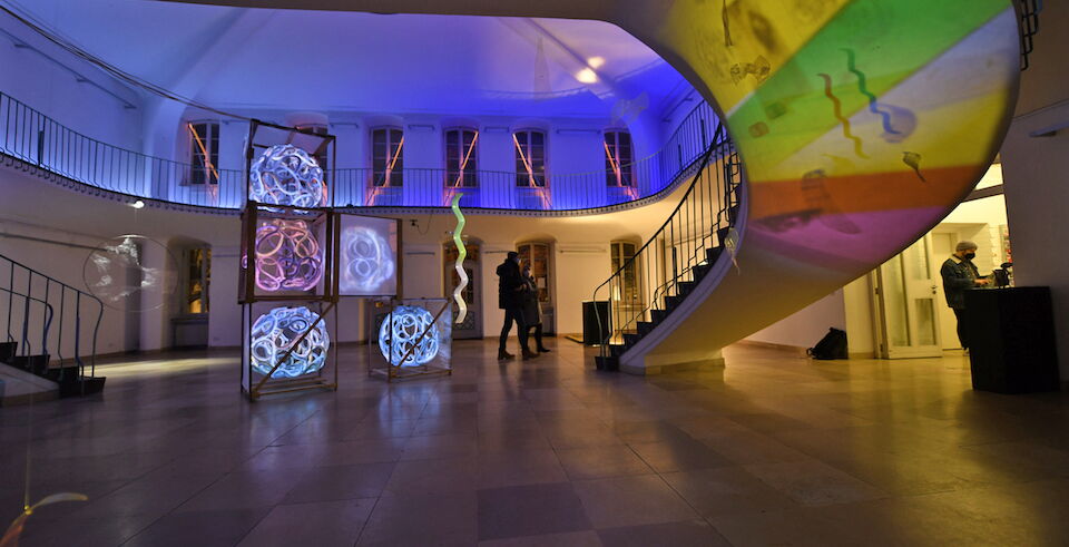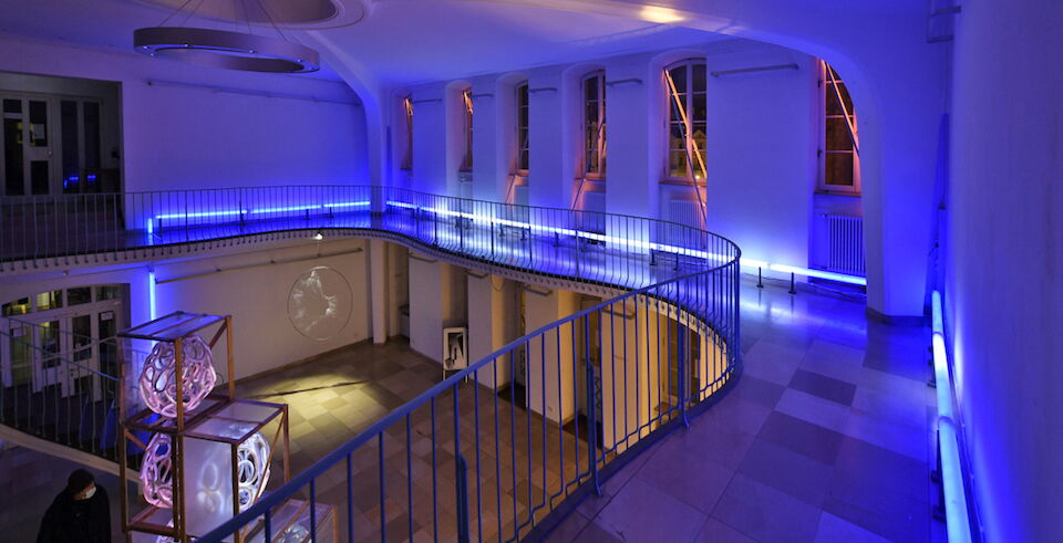 In Rahmen der Lange Nacht der Kunst präsentierten sechs Künstlerinnen des Ateliers für Licht und Intermedia bei Prof. Daniel Hausig im Foyer der HBKsaar und im Studierendenatelier raumgreifende Installationen mit Licht. Die Werke im Foyer sind für die Besucher:innen sowohl von Innen als auch von Außen durch die Fenster erlebbar.